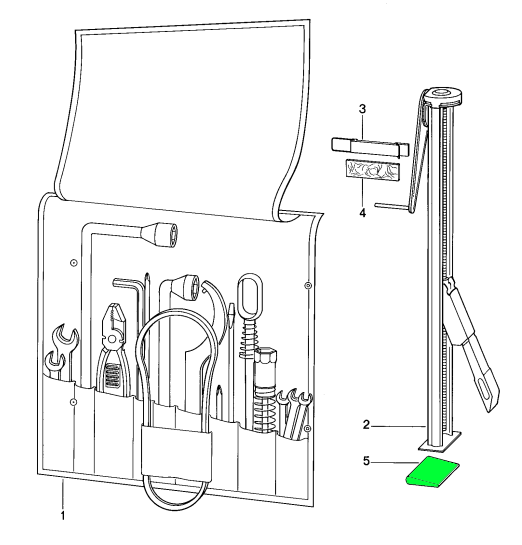 In addition to those tools that can also be found in the 911 pocket for the model years 1974 to 1982, there are additional tools for emergency operation in the event of a defective sunroof or window lift motor. Compared to the bags of the early G-models, this bag has a towing eye with a screw thread.