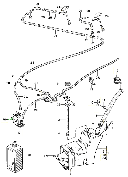 Bottle / Reservoir: Stores the washer fluid and is typically located