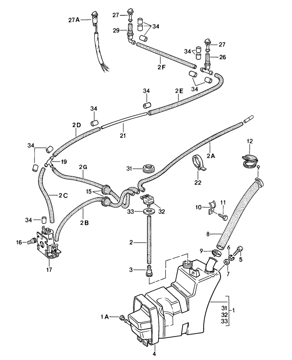 Washer pumps, bottles, and jets are key components of your Porsche’s windscreen cleaning system. They work together to deliver washer fluid from the reservoir through the pump and jets, keeping your windscreen clear of dirt, bugs, and debris for safe driving visibility in all conditions.