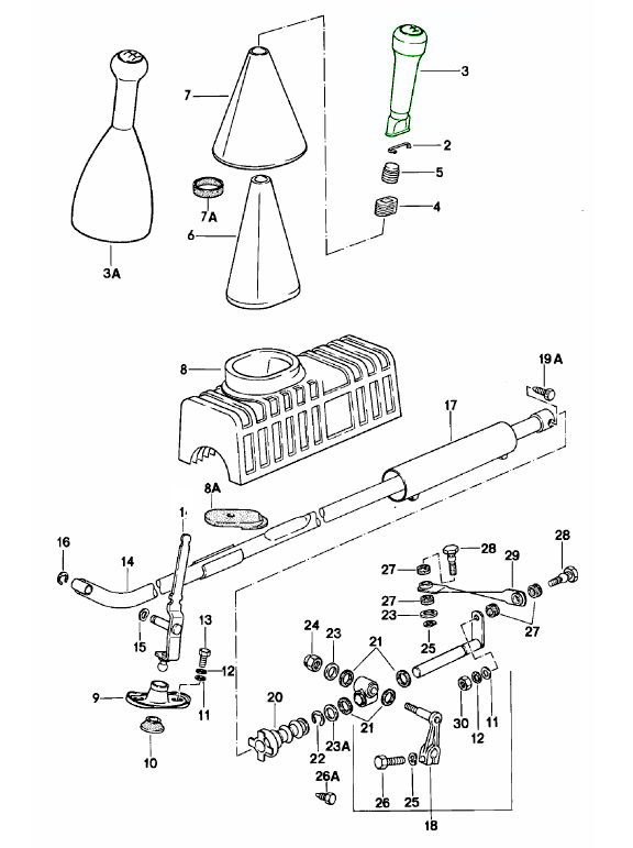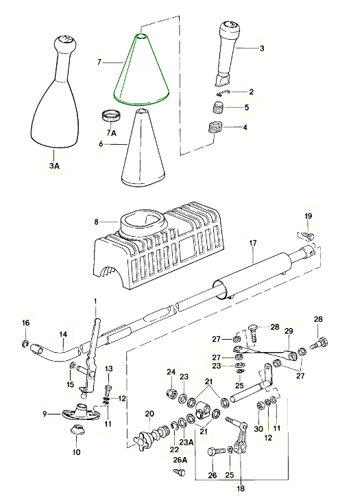 The gearshift assembly enables the driver to control transmission gear changes — linking the gear lever to the gearbox via linkages, cables, or electronic selectors.