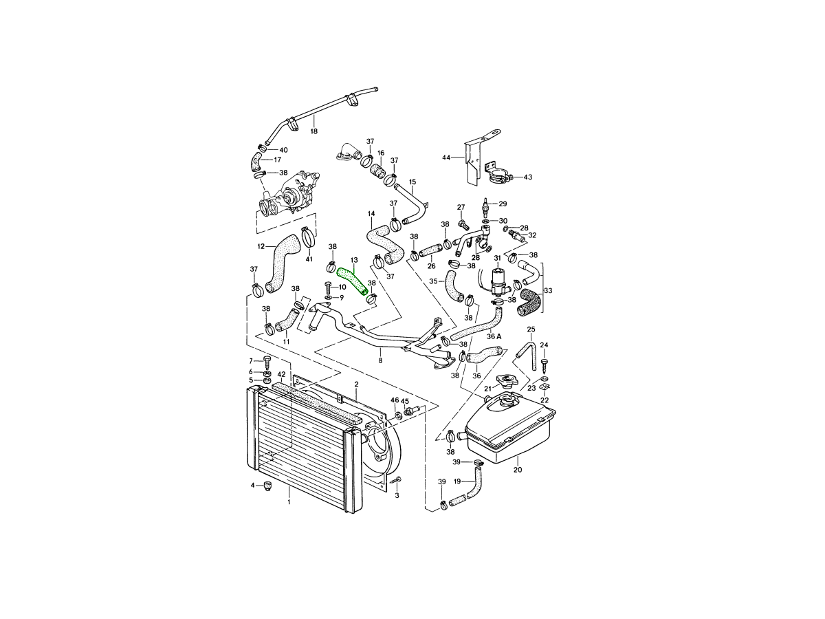 As part of the 944 Turbo cooling system, this hose supports the flow of coolant through key engine components, helping maintain stable operating temperatures and ensuring the temperature sensor receives accurate readings.