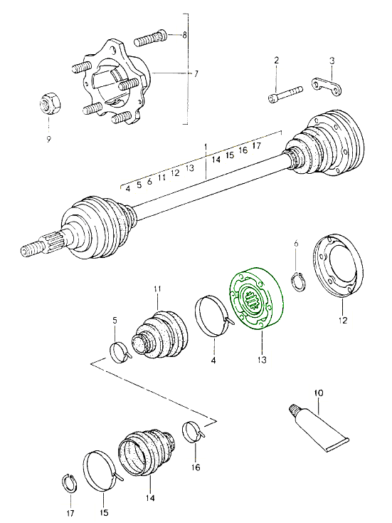 - Complete Porsche CV joint kits with boots, grease, and clamps.