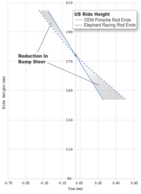 Even on cars fresh from the Porsche factory assembly lines our anti-bump steer kit will reduce bump steer through the full range of motion.
