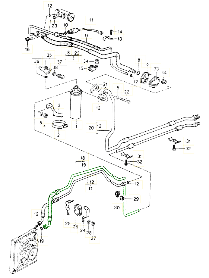 • Precision-engineered Porsche A/C pipes and refrigerant lines.