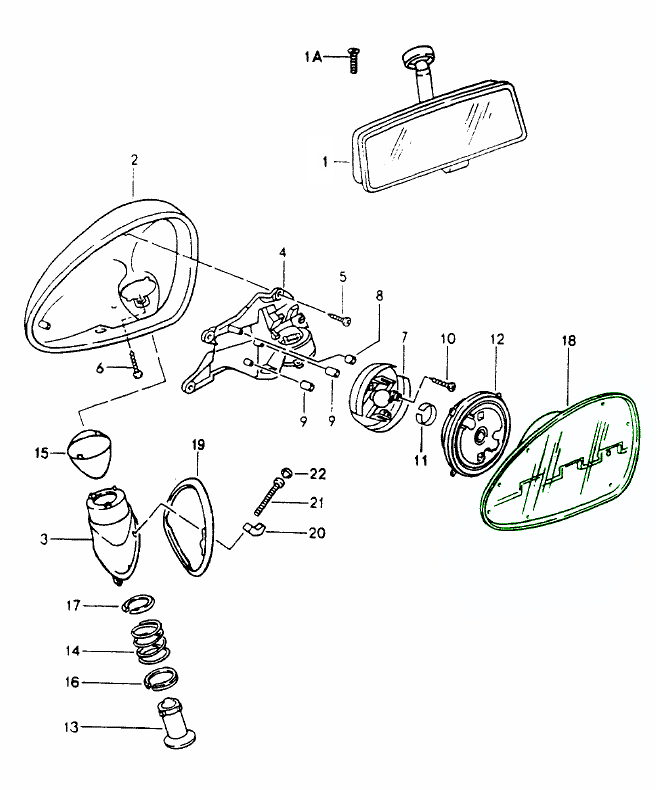 Authentic reproduction mirrors for classic Porsche models