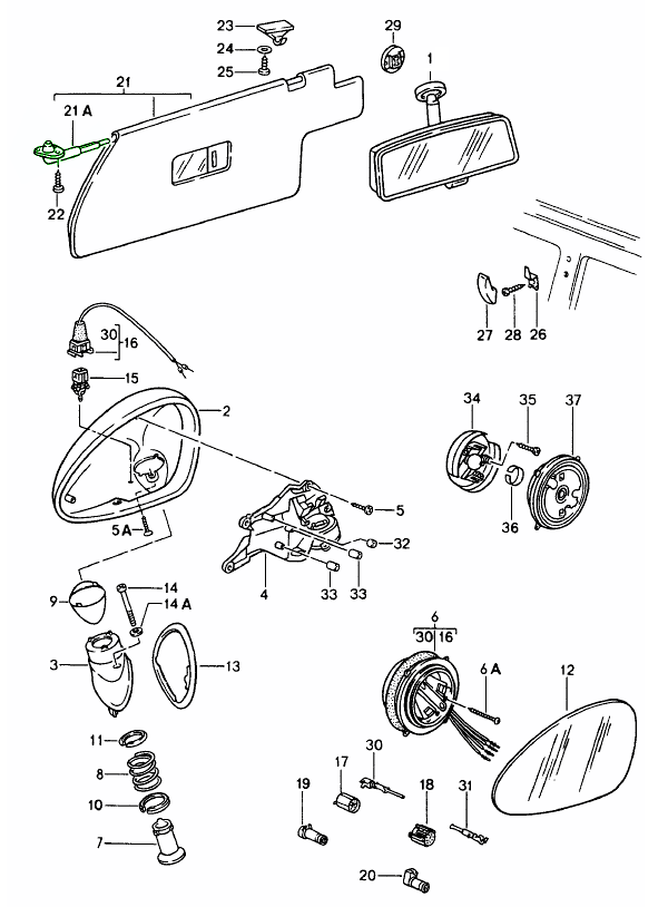 Sun visors and their fittings play a key role in comfort, safety, and aesthetics within your Porsche’s cabin.