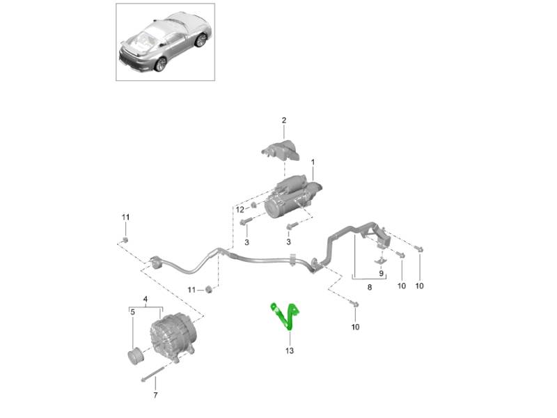 The wiring harness for the battery, starter, and alternator is a critical component of the vehicle’s electrical and charging system, designed to deliver reliable power distribution between key electrical components. This harness connects the battery to the starter motor and alternator, ensuring efficient current flow for engine starting and battery charging.