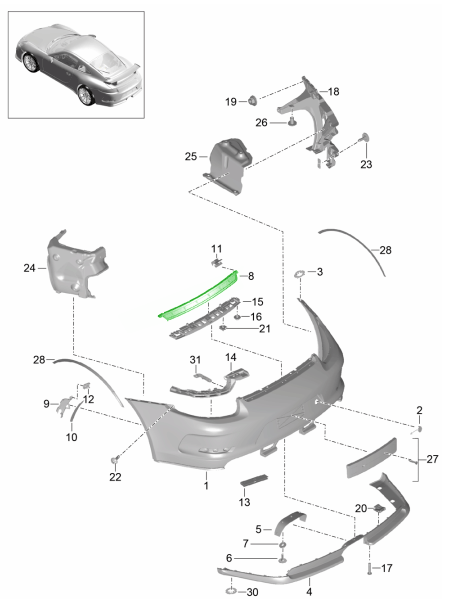 vibration-free installation of Porsche rear bumper vents and grilles.