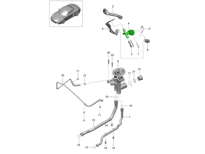 Porsche transmission coolant control valves, also known as change over valves, regulate the flow of coolant to the gearbox and transmission oil cooler. These valves ensure the transmission reaches optimal operating temperature quickly, then maintains stable cooling under load, improving efficiency, shift quality, and long-term gearbox reliability.