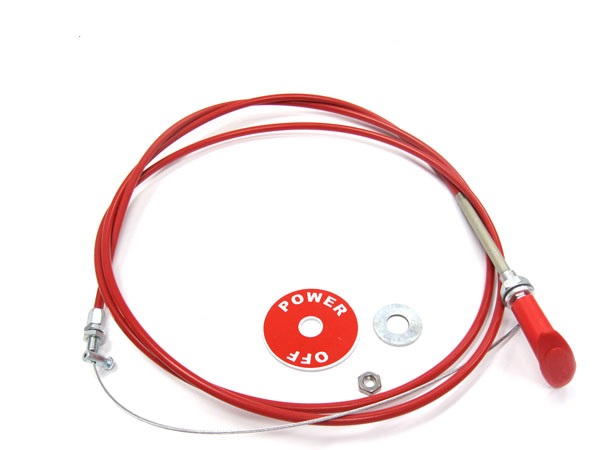 This item is required by most organized race events. Remote pull kits allow corner worker to easily turn the power off on your car in the case of an emergency. This kit has a T-Handle end that can easily be installed through existing or drilled holes. Kit can also be mounted in dash for easy driver access. Kit Includes 6' red pull cable with handle, power/ off tag, cable end and full installation instructions. Can be used on several different battery disconnect switches.