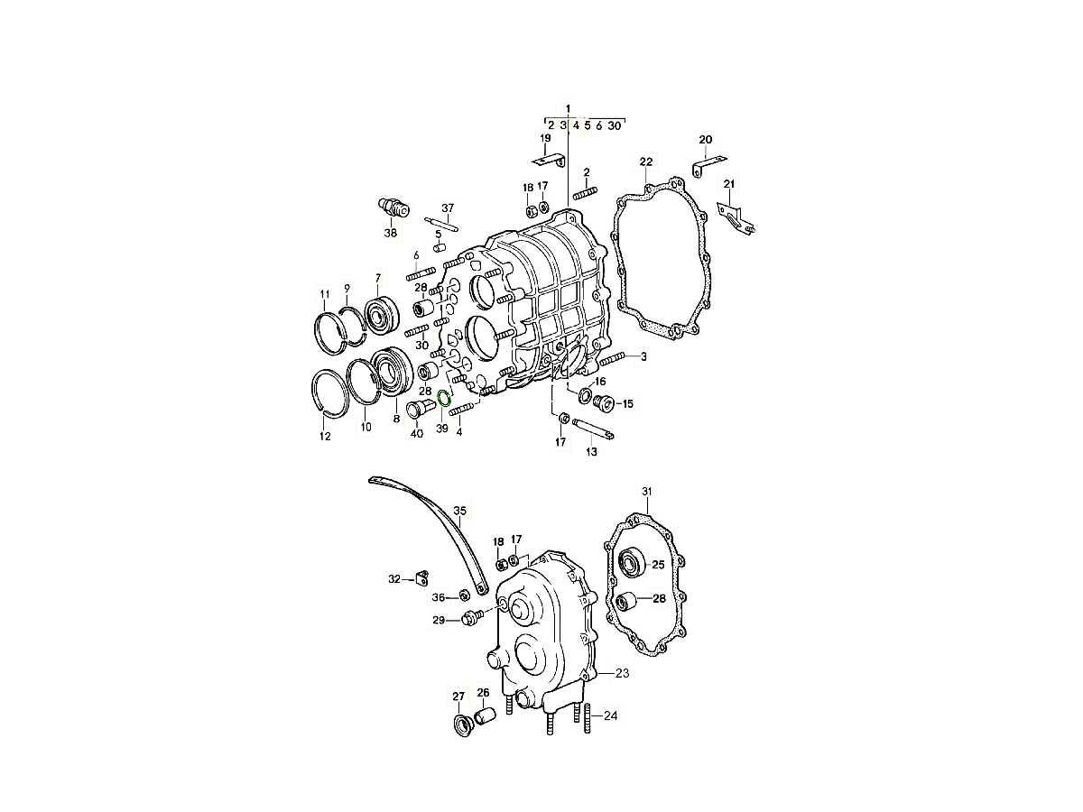 A complete genuine gasket set is essential during gearbox overhauls. Whenever the transmission case is opened or components such as bearings and synchronisers are replaced, installing new Porsche seals guarantees factory-level sealing integrity and prevents post-service oil leaks — preserving the reliability and precision of your drivetrain.