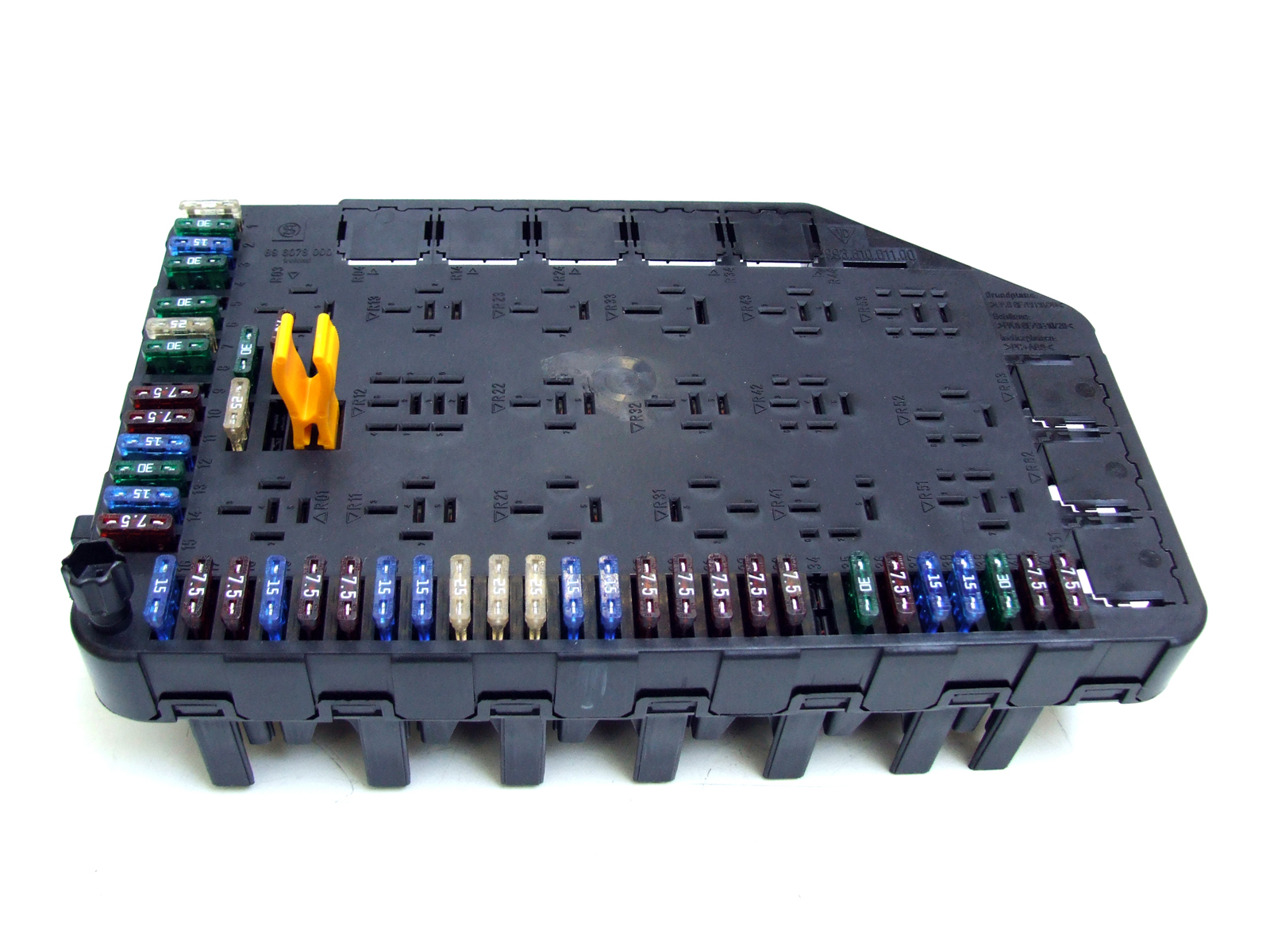 The fuse & relay box is the main distribution hub for many of the vehicle’s electrical circuits. It houses fuses and relays for systems such as lighting, wipers, horn, fuel pump, window-lift, blower/fan systems, head-lamp washers, and other ancillary circuits. This central module sits in the front (luggage) compartment on 911/993 models and ensures that power is correctly routed, protected, and controlled throughout the car’s electrical network.
