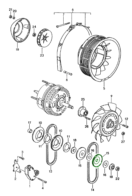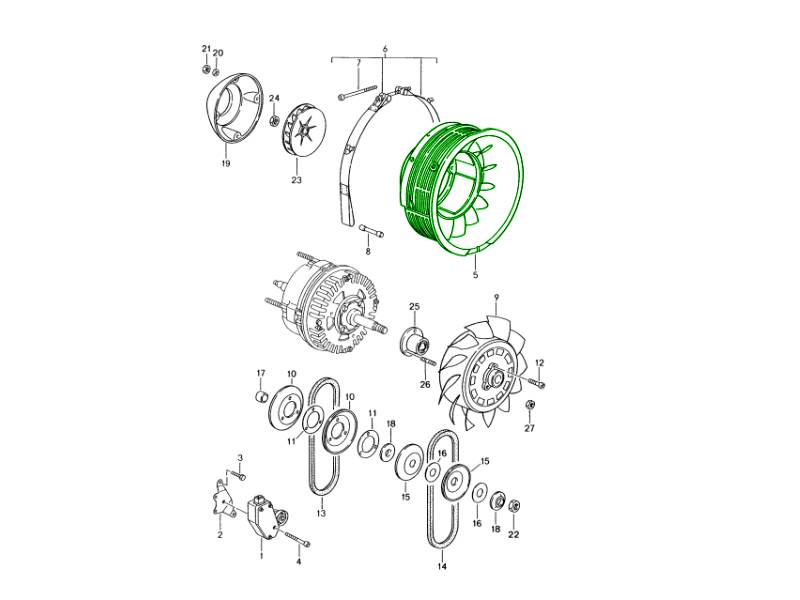 Genuine Porsche alternator fan / impeller housing strap for 911 (993). Ensures secure fit, proper alignment, and reliable cooling performance.