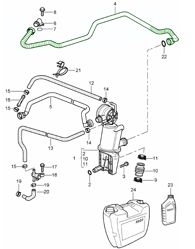 The oil separator and vent system controls crankcase pressure and removes oil vapour from the air circulating inside the engine.