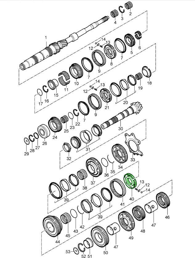 • Maintain correct alignment between gear hub, synchro ring, and dog teeth.