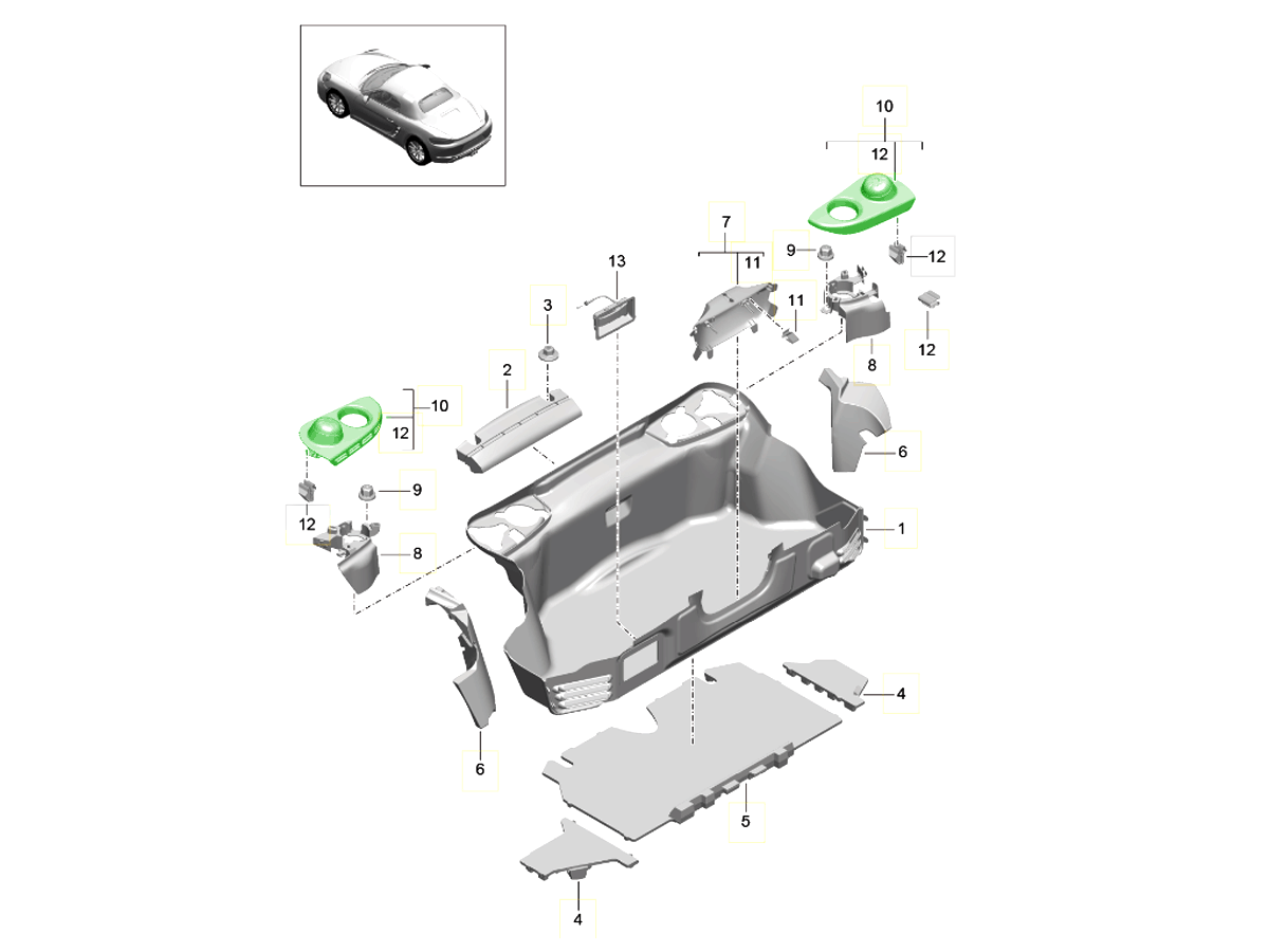 Produced specifically for Porsche Boxster / Cayman the Lid Liners are your only protection from stored cargo and misplaced items.