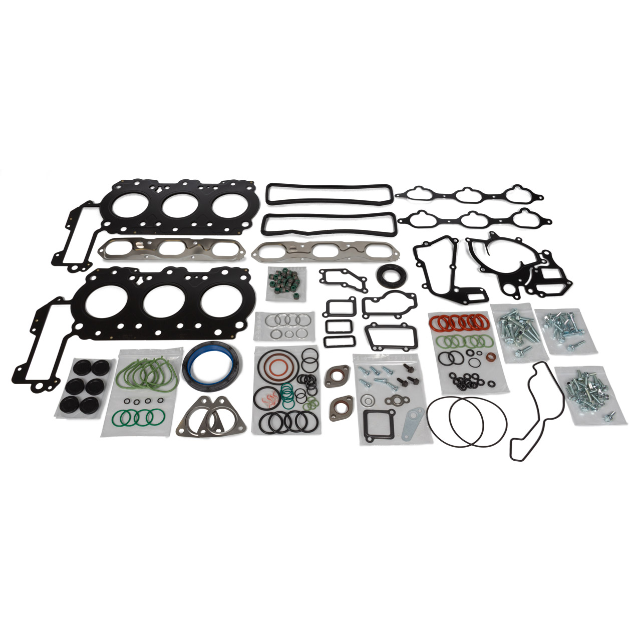 Complete engine gasket set for Porsche 986 Boxster S 3.2L (2000–2002, M96.21 engine). This high-quality OE Match kit includes all major gaskets, seals, and O-rings needed for a full rebuild—restoring proper sealing, performance, and engine reliability.