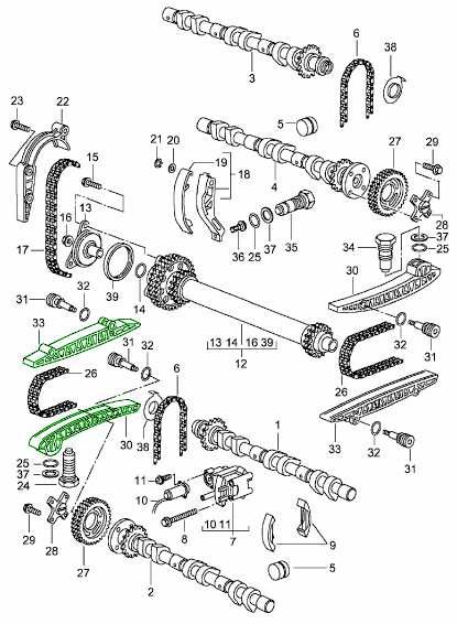 camshaft and intermediate shaft, as well as the slide and tension rails.