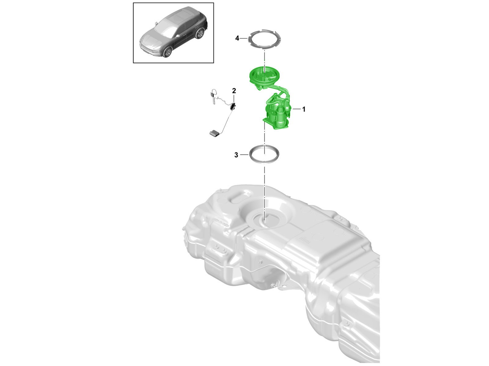 The Porsche Genuine OE Fuel Pump is an original factory in-tank electric fuel pump assembly designed for the Porsche Cayenne 9YA (E3) models with V6 engines up to 2019. This component forms part of the low-pressure fuel delivery system, supplying fuel from the tank to the engine.