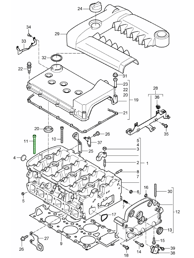 Diagram ref no 18 (cyl. 1-3) or 17 (cyl. 4-6)