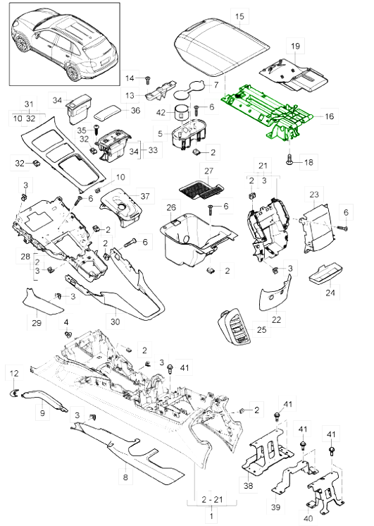 The centre console is the command hub of your Porsche’s interior — housing essential controls, storage compartments, trim pieces, and electronic interfaces. From gear selectors and switches to armrests and cup holders, these components provide both functionality and aesthetic balance within the cabin.