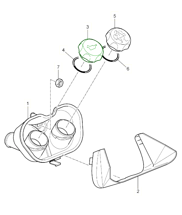 The oil filler neck system provides a controlled entry point for adding engine oil while maintaining the closed integrity of the lubrication circuit.