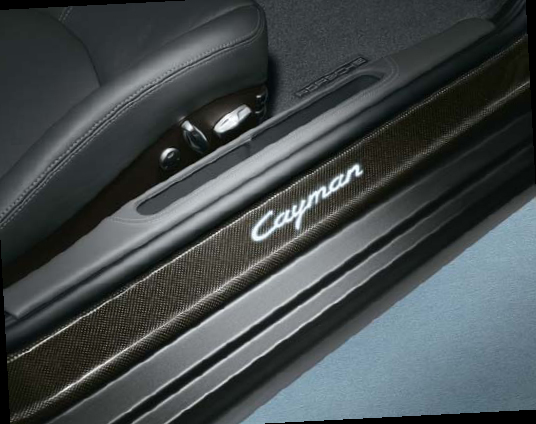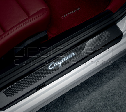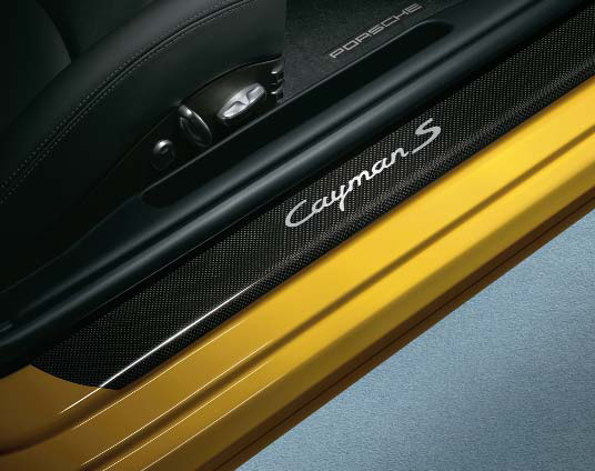 These carbon-fibre guards with model logo are a stylish reference to the racing origins of Porsche.