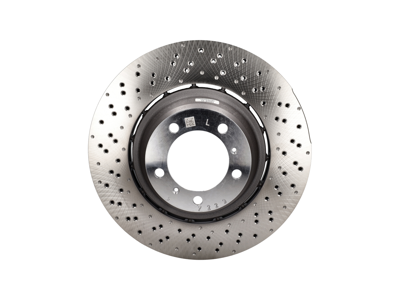 Rear drilled monoblock brake disc rotor.