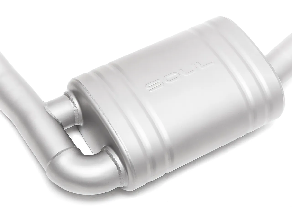 We wanted to be certain that our system offered a superior spectrum of sound – Cup car inspired with valves open but with a refined, no droning tone with valves closed. The SOUL mufflers practically eliminate droning – even with aftermarket headers the sound is reserved in the cabin with valves closed!