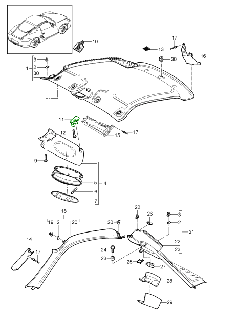 Sun visors and their fittings play a key role in comfort, safety, and aesthetics within your Porsche’s cabin.