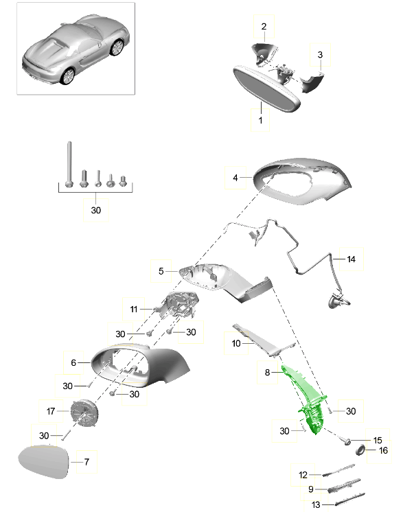 clips for accurate installation and long-term reliability of Porsche mirrors.