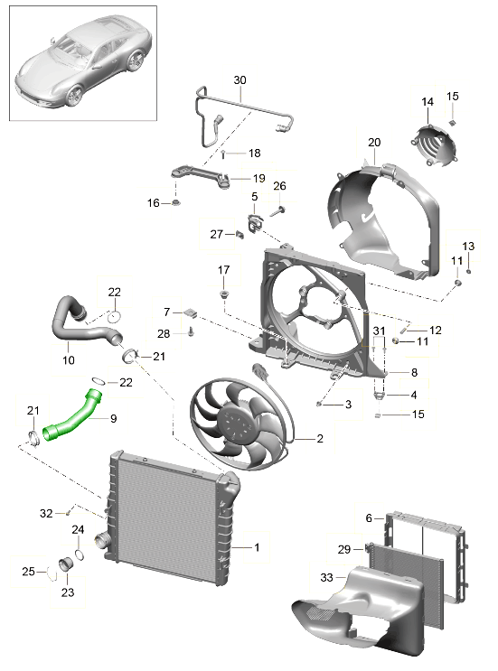Radiator Section Coolant Hoses – Mid & Rear-Engine Porsche Models