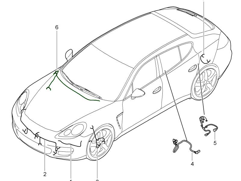 Wiring looms / bumper / FRONT luggage compartment / Bonnet / anti-locking brake syst. -abs- / brake pad wear display / Front axle / Lock control / PDCC / Rear axle Panamera 970 (G1) 2010-16 902-012