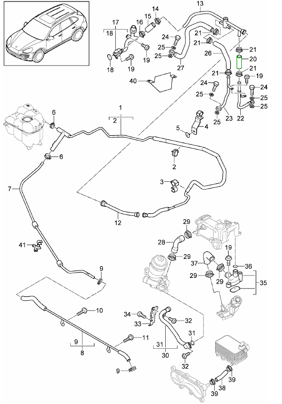 At Design911, we supply a complete selection of genuine and manufacturer-quality engine block coolant hoses for front-engine Porsche models, including the transaxle models, Cayenne, Panamera, and Macan. Each hose is precisely engineered for a perfect fit and superior heat resistance, offering the same durability, flexibility, and performance as factory-installed components.