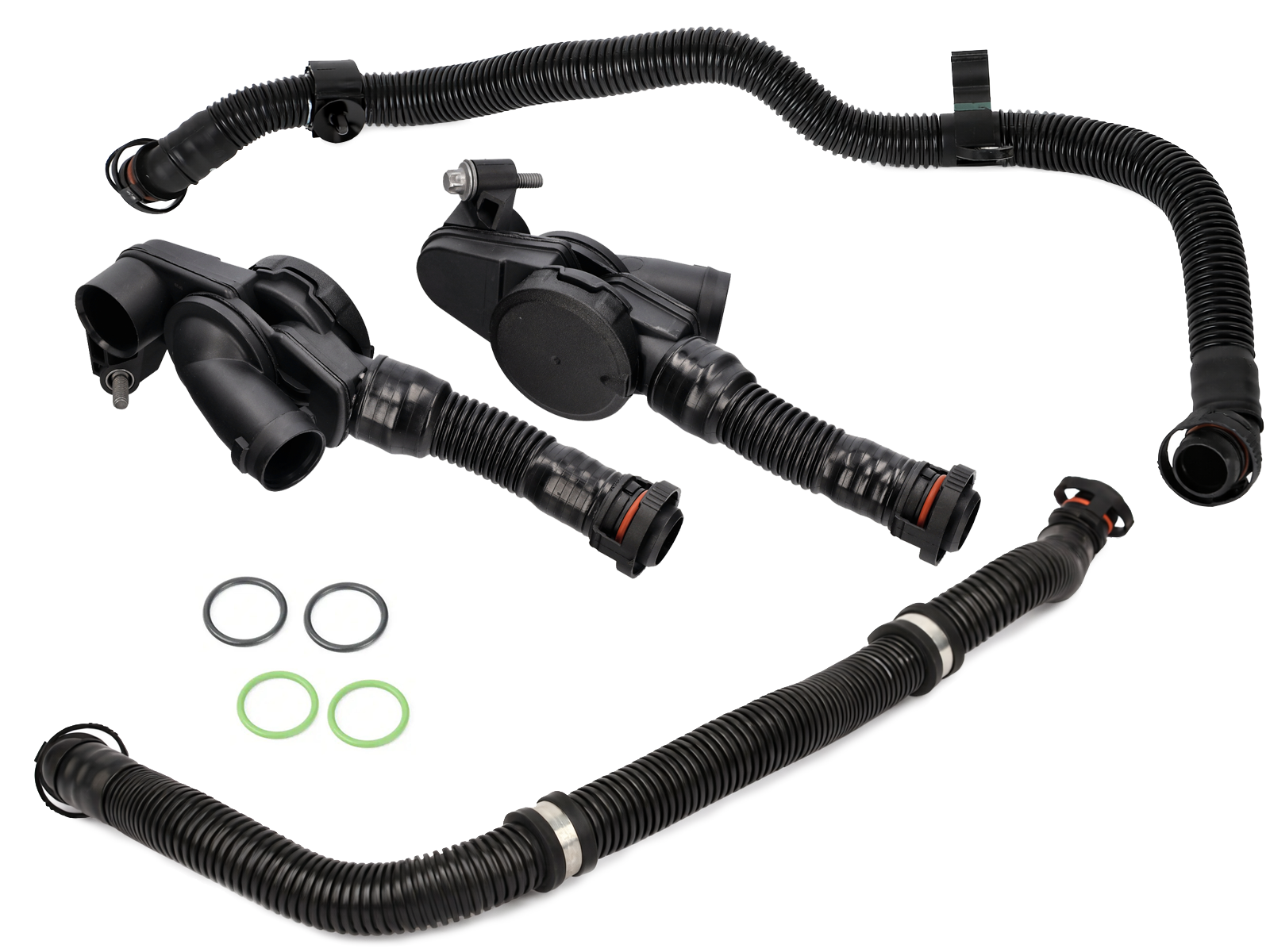 The crankcase ventilation system regulates the internal pressure and gases generated during engine operation. This kit supplies all essential components required to replace worn or failing crankcase vent valves, hoses, and associated seals. The included parts are engineered to mirror factory fitment and performance, restoring proper crankcase breather function and helping prevent oil leaks, performance issues, and check-engine codes.