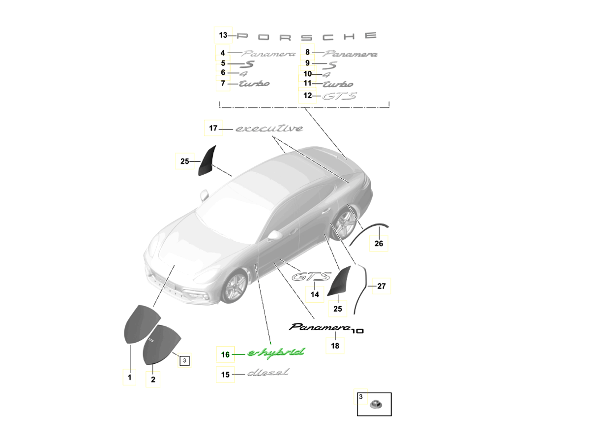 - Porsche 971.1 Panamera 4 E-Hybrid V6 2.9L 4WD Executive 2017-20