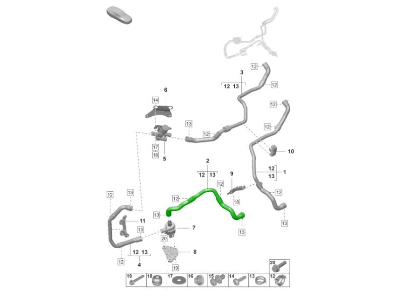 The Heating Hose is a OE MATCH heater coolant hose designed to carry hot engine coolant through the HVAC heating circuit. This hose supports proper coolant circulation to the heater core and heater pump, ensuring consistent cabin heating performance and maintaining stable cooling system operation. It offers precise fitment, excellent resistance to heat and pressure, and long-term durability for Porsche Panamera (971) models.