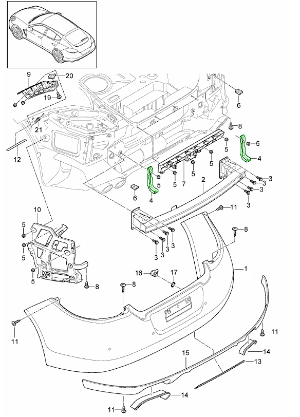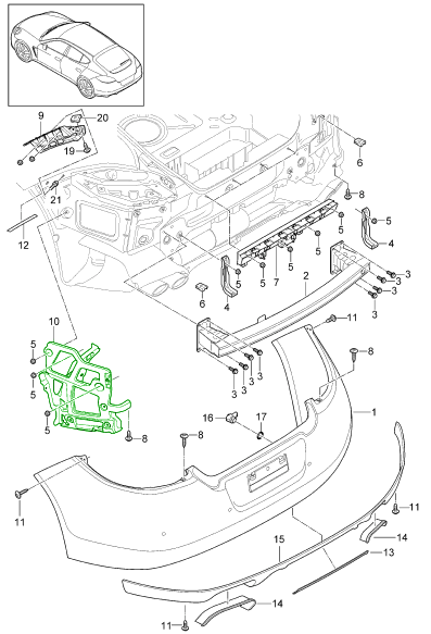 Precision-engineered Porsche rear bumper brackets that provide stable mounting points for the bumper assembly, ensuring secure fitment and alignment.