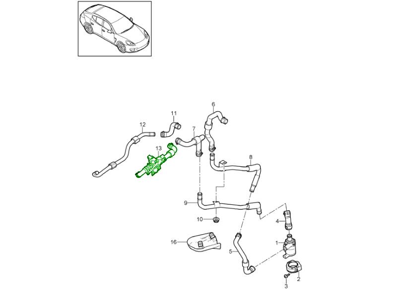 Hot air line / Supply / Return line / water box / Auxiliary heater (PR:850,851) Panamera 970 (G1) 2010-16 813-005