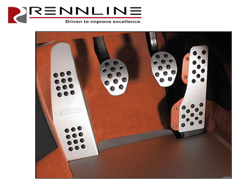 Rennline's rubber grip aluminium pedal covers are the ultimate interior upgrade for any performance automobile. Rennline has taken this pedal design to the next level by utilizing rubber grips that can easily be replaced if needed. Each pedal set comes with several replacement rubber grips, but additional grips can be purchased separately at any time. Rennline pedal sets are constructed of anodized aircraft grade aluminium and all stainless steel hardware.