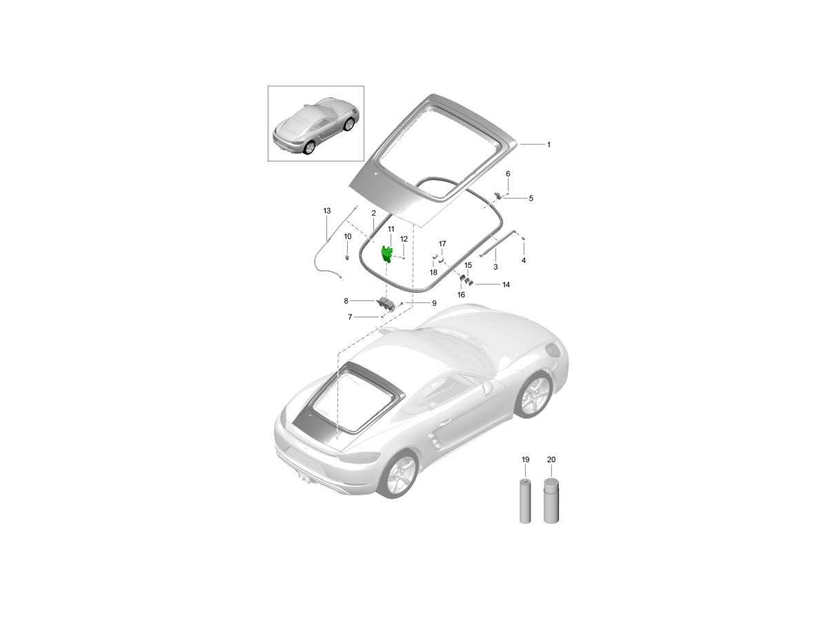 The rear tailgate lock mechanism for the Porsche 981 and 718 Cayman is an essential component of the rear hatch locking system. It secures the rear tailgate in place and integrates with the vehicle’s central locking system to ensure safe and reliable operation.