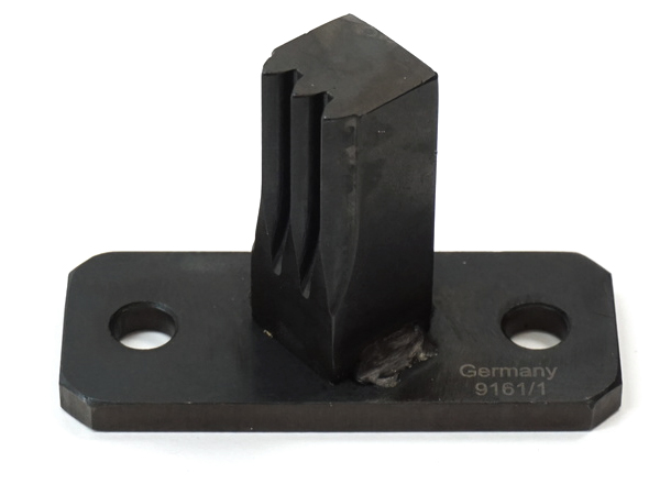 The locking tool is placed on the receiving points of the clutch slave cylinder, thus blocking the crankshaft via the ring gear. It is an indispensable special tool for working on the engine. The tool can be set free of play thanks to the long hole.