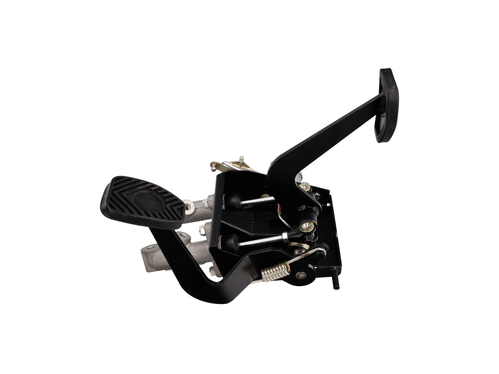 The balance beam systems has two brake master cylinders mounted in parallel on a bracket that allows precise adjustment between the front and rear axles.