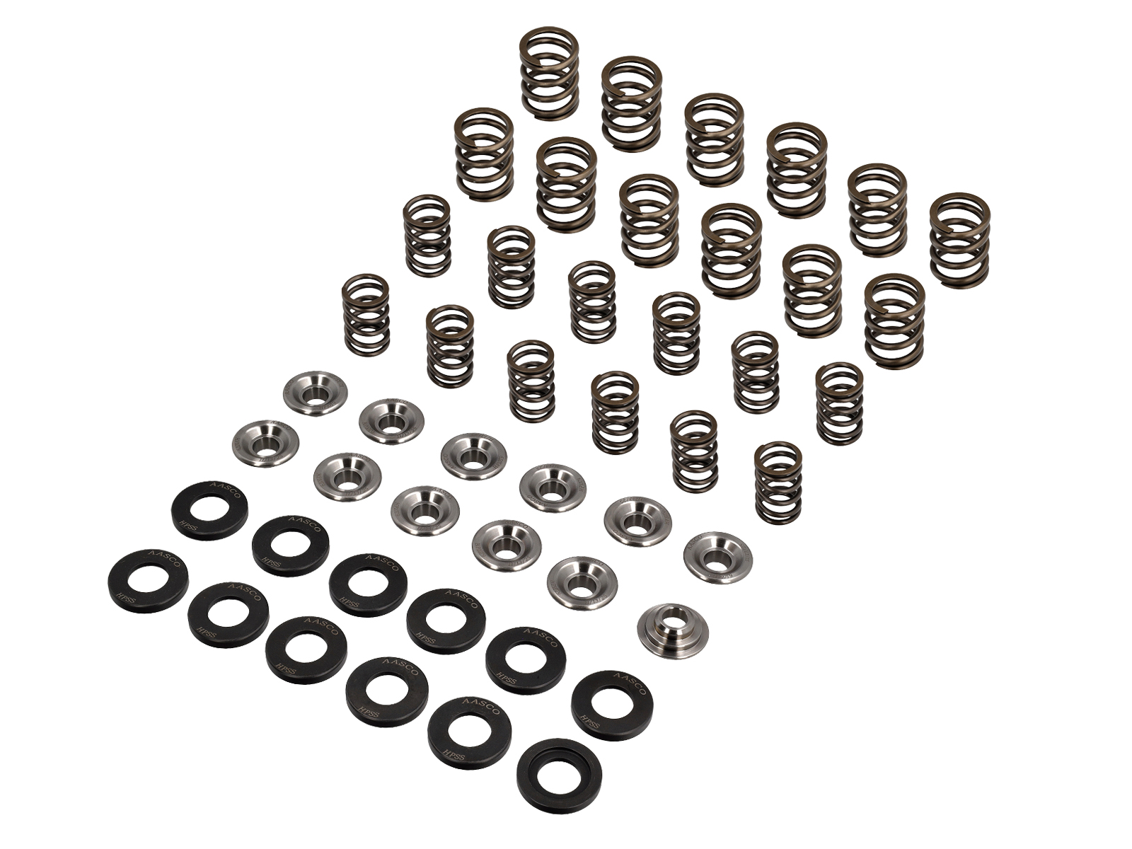 我们的钢弹簧座将 Aasco 高性能气门弹簧的内部弹簧装入其中。