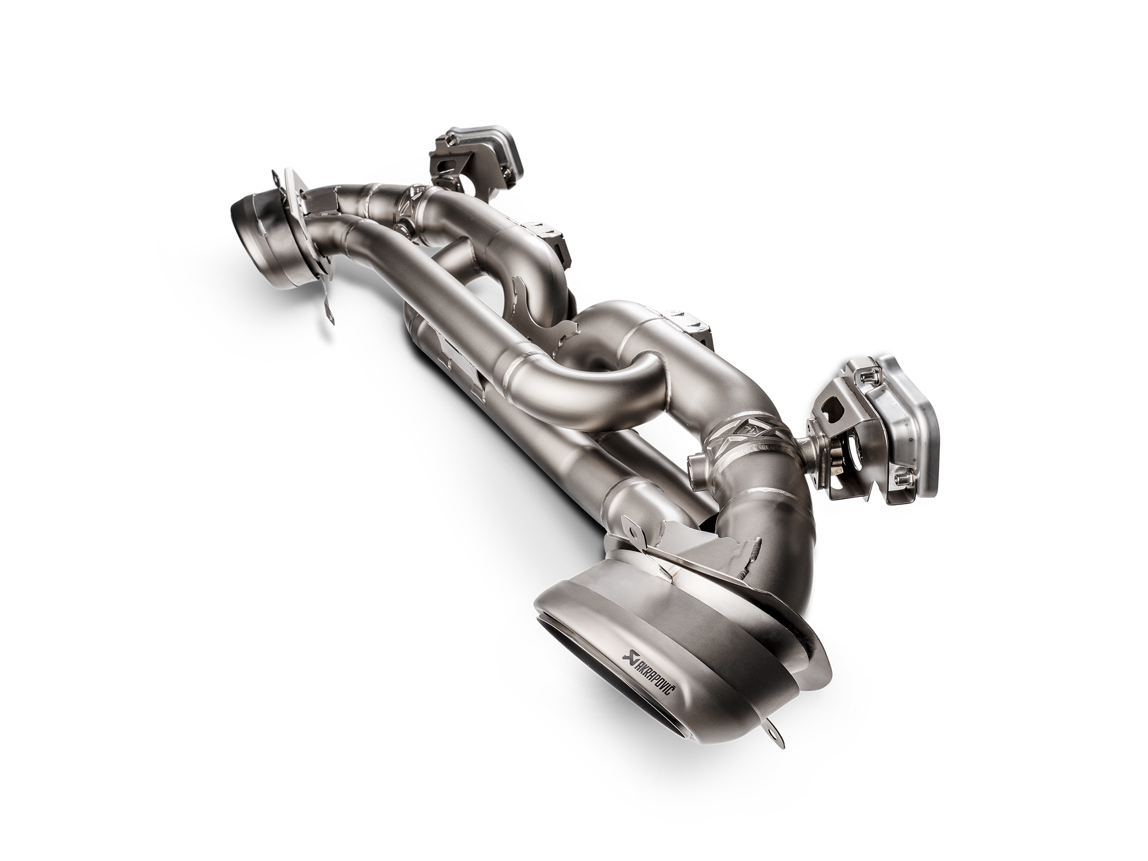 Evolution Header Set 将滑套式排气系统升级为一套完整的排气系统,旨在显著提升高转速下的动力。手工打造的钛合金排气管集成了 100 cpsi 运动型催化转化器和侧消声器,旨在提升动力和扭矩。Evolution Header Set 利用集成式催化转化器和排气门的功能,带来震撼的感官体验。当排气门处于开启状态时,发动机发出更具运动感和强劲的轰鸣声;当排气门关闭时,发动机噪音也更低,非常适合日常使用。此外,发动机后部和后桥区域的重量减轻,将增强操控性并提升性能。