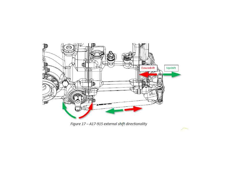 强烈建议使用Albins A17 序列式换挡机构,因为它是专为与A17-915 变速箱配合使用而设计的。如果使用其他换挡机构,则必须确保换挡杆配备行程限位器。虽然 A17-915 变速箱内部设有行程限位器,但换挡杆上的外部限位器有助于防止过度移动,从而避免选档杆和相关传动系统部件过载。