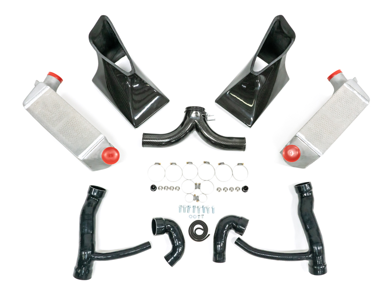 • Carbon fiber intercooler shrouds form a tight seal to maximize cooling efficiency