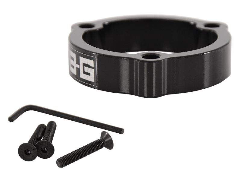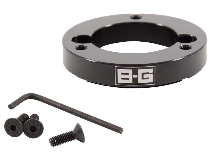 BG 方向盘垫片由高品质铝制成,具有优雅的黑色阳极氧化表面和激光蚀刻的 BG 标志,使用提供的固定螺钉即可轻松安装。