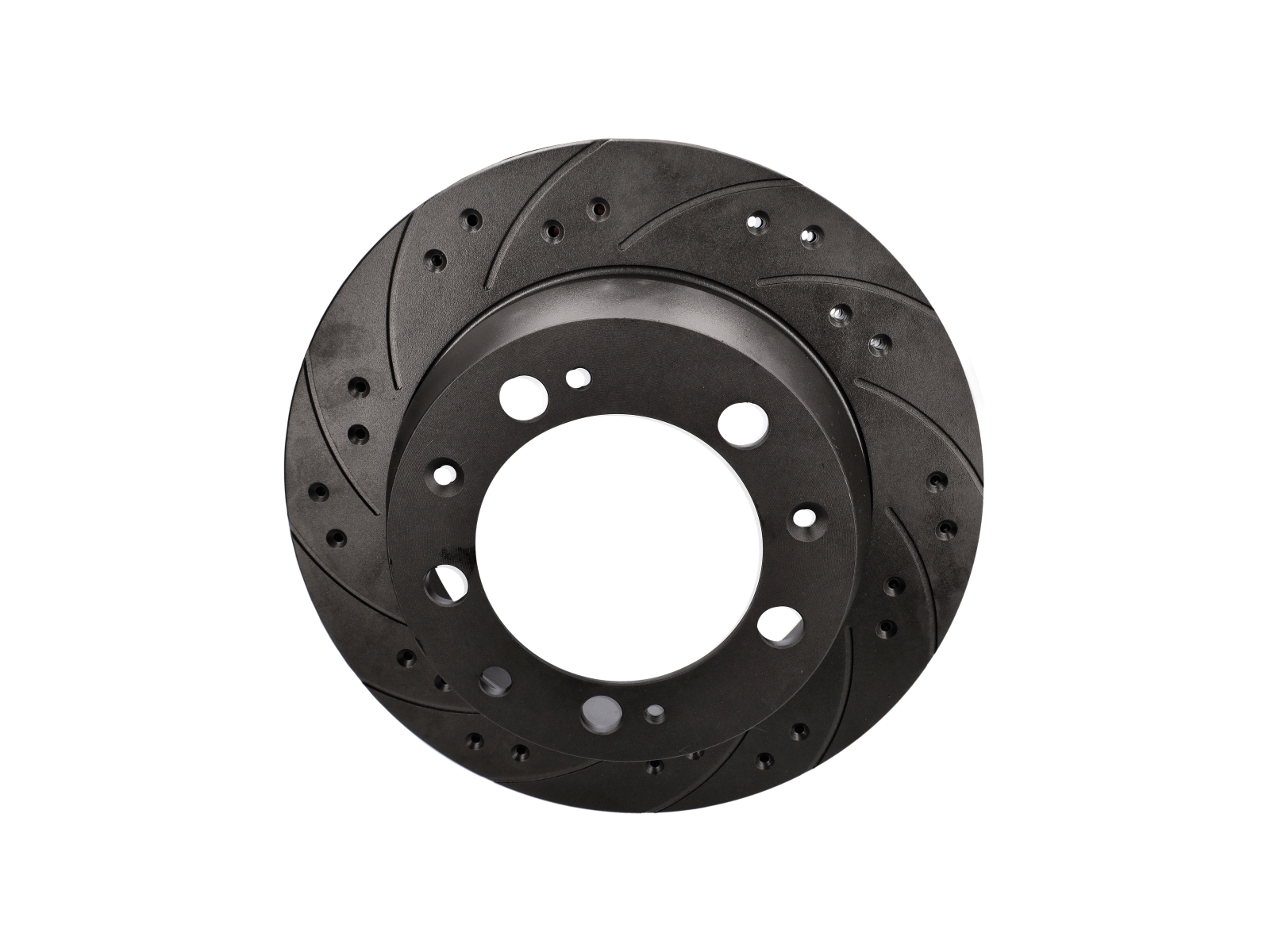 Black Diamond Combi 制动盘的每个制动盘表面都有 12 个弯曲的径向凹槽,每个凹槽之间都有机械加工孔,可实现出色的散热和冷却效果。这种机械加工表面组合还有助于去除刹车片上的釉质,在紧急制动条件下提供更大的摩擦力,并使其不易褪色。结果是踏板感觉更好,制动响应也得到改善。