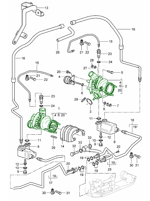 标准替换涡轮增压器。仅左侧,气缸 1-3 (保时捷编号 9A112301378)